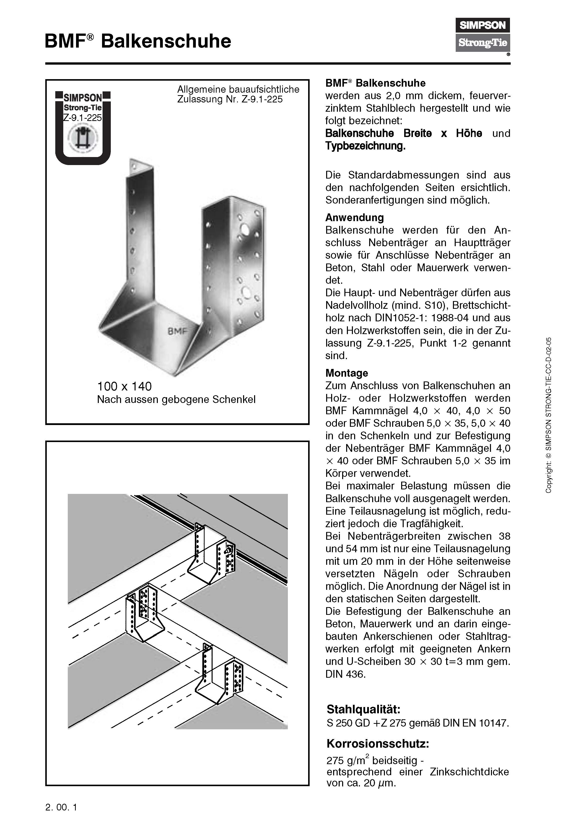 BMF® Balkenschuhe werden aus 2,0 mm dickem, feuerverzinktem Stahlblech hergestellt